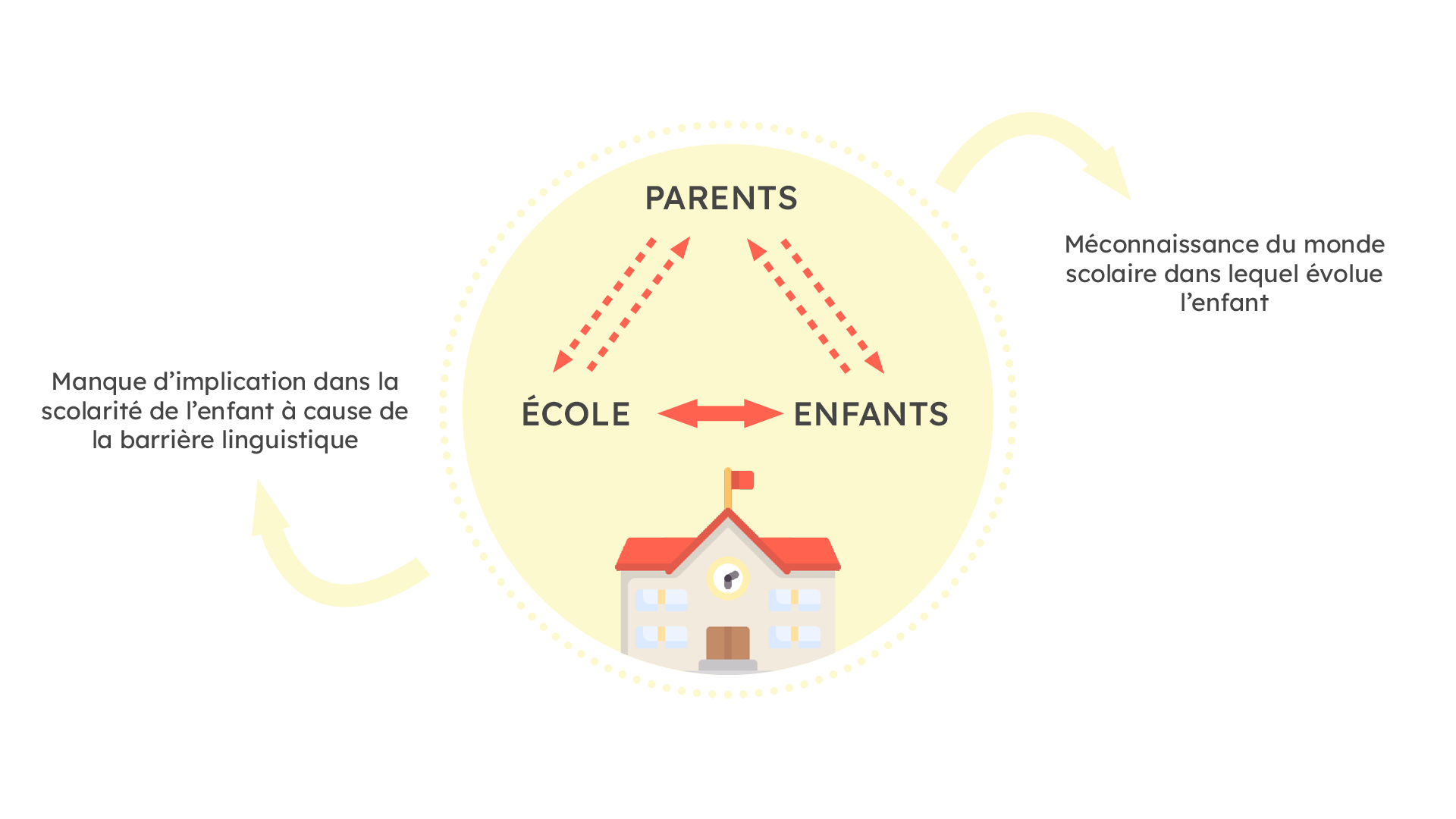 Confrontés à différents obstacles, les parents d’élèves allophones se retrouvent perdus dans la scolarité de leurs enfants : ils ne sont pas familiers avec le système scolaire belge, ne comprennent pas bien les documents transmis par l’école, connaissent mal les intervenants de l’école, etc.
