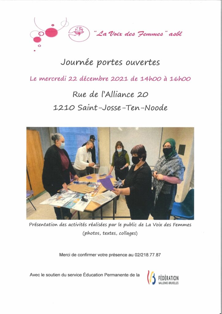 La Voix des Femmes a le plaisir de vous inviter à leur journée Porte ouverte le mercredi 22 décembre de 14 à 16h.